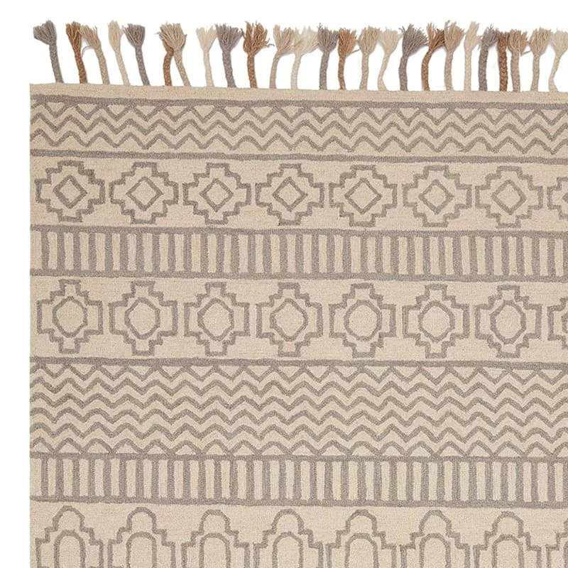 Featuring compelling global-inspired designs brimming with charm, our 3x5ft. Arthur ivory/grey tasseled rug is the perfect addition to any home. Bringing and eclectic energy to any room, this wool area rug is a showstopper! The meticulously woven construction and design of it boats durability and will provide natural character into any room you put it in. Available in 5x7ft. and 8x10ft. sizes and a 2x6ft. runner.