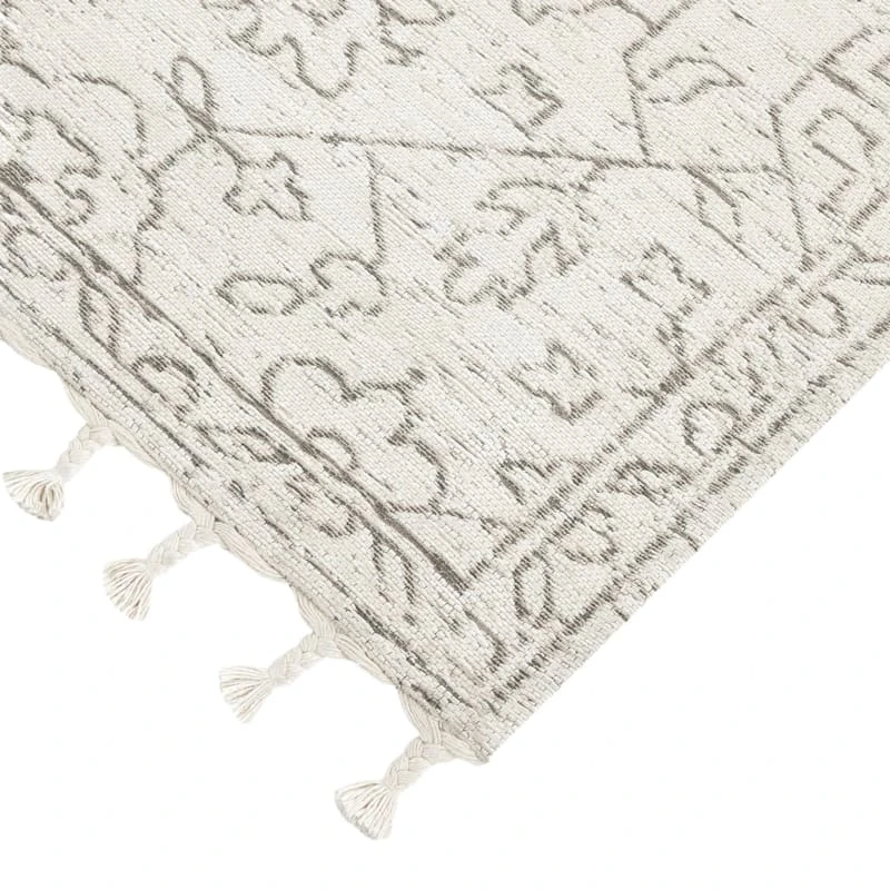 (B719) Elsa Cream Flatweave Fringe Area Rug, 5×7