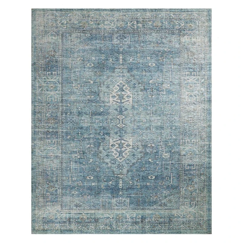 With its stunning blue hues and distressed printed design, this rug has a vintage feel. Crafted entirely using a premium polyester, the Alana blue area rug is easy to clean with anti-shedding capabilities, making it both pet and family friendly.