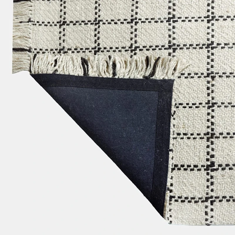With its modern, yet classic grid pattern, this hand-woven rug would be a great addition to any space. Handcrafted in India, using natural fibers, this black and white plaid area rug is able to easily layer into your existing home design.