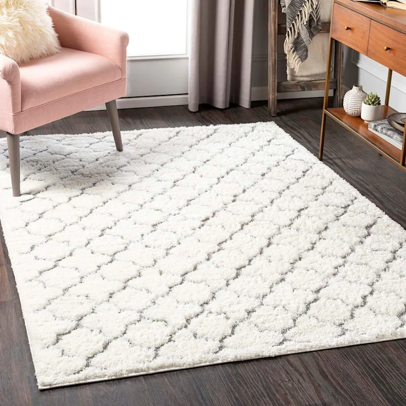 Introduce this modern shag rug into your home and transform it into ultimate cozy space. The on-trend pattern on a soft, plush high-low pile creates extra depth and the neutral tones will compliment any decor. Perfect for a bedroom, living room, loft, playroom, or anywhere you want to add style and comfort. Made of 100% polypropylene in Turkey, this rug is durable and an amazingly comfy addition to any floor throughout your home.