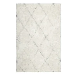 Our ivory and grey diamond shag area rug is ideal for traditional and modern settings, and it helps with noise levels and keeps bare floors nice and comfy. The plush, tufted polyester pile offers a super-soft feel and will be a treat for your toes. This rug will be comfortable in a contemporary loft or just at home in a modern farmhouse. Available in 5x7ft. and 8x10ft. sizes.