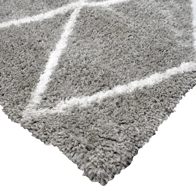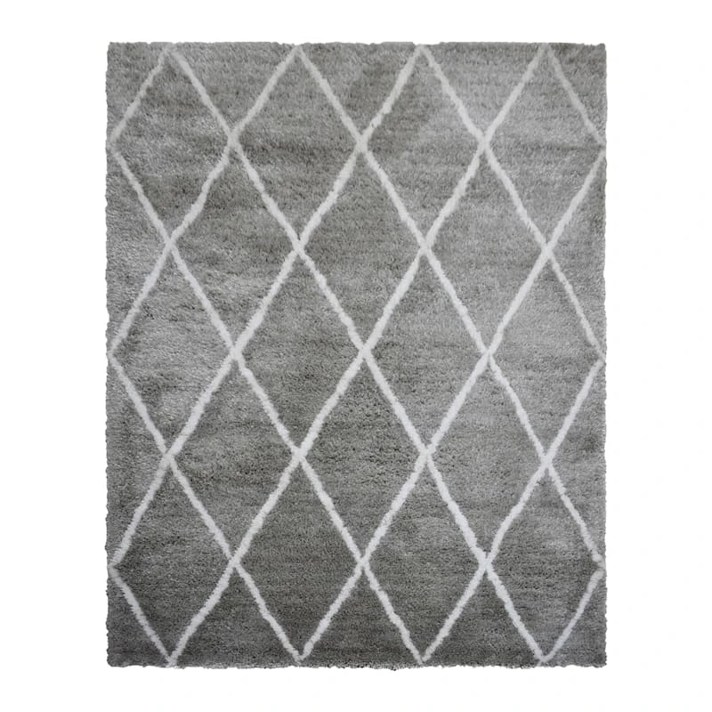 Featuring an allover linked pattern, our tufted diamond area rug is 100% polyester to avoid pilling and shedding. This striking 8x10ft. area rug makes a great addition as an accent in larger living rooms or as a focal point in smaller spaces. A true statement piece that will have family and friends wondering βWhere on earth did you get this amazing new rug?β All you have to say is, βAt Home, of course.β