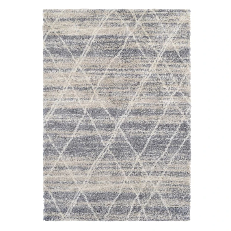Our cozy grey, white and cream Moroccan style shag area rug is ideal for traditional and modern settings, and it helps with noise levels and keeps bare floors nice and comfy. The plush graphic lattice synthetic pile offers a super-soft feel and will be a treat for your toes. This rug will be comfortable in a contemporary loft or just at home in a modern farmhouse. Available in 5x7ft. and 8x10ft. sizes.