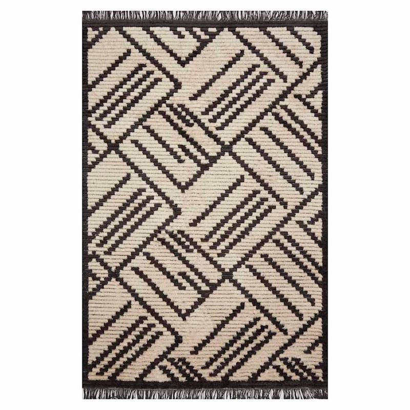 (C161) Tracey Boyd Elizabeth Grey & Beige Fringe Area Rug, 8×10