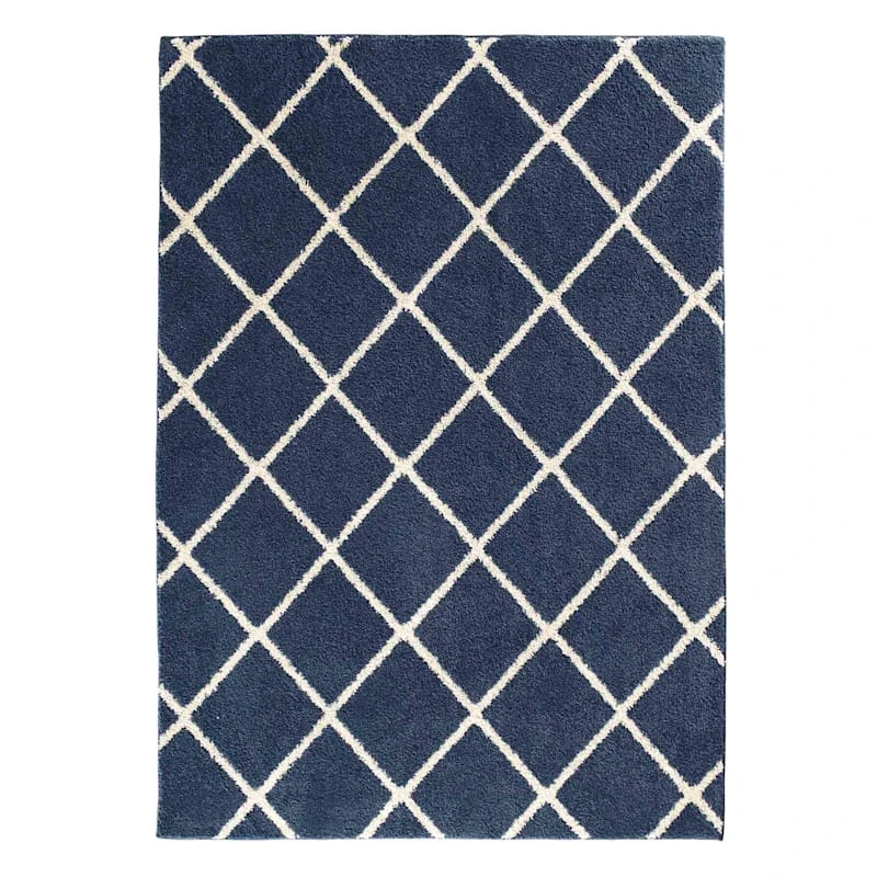 Featuring an allover blue lattice pattern, our Brampton tufted area rug is 100% synthetic to avoid pilling and shedding. This striking area rug makes a great addition as an accent in larger living rooms or as a focal point in smaller spaces. Features a non-slip backing. A true statement piece that will have family and friends wondering βWhere on earth did you get this amazing new rug?β All you have to say is, βAt Home, of course.β Available in 5x7ft. and 8x10ft. sizes.