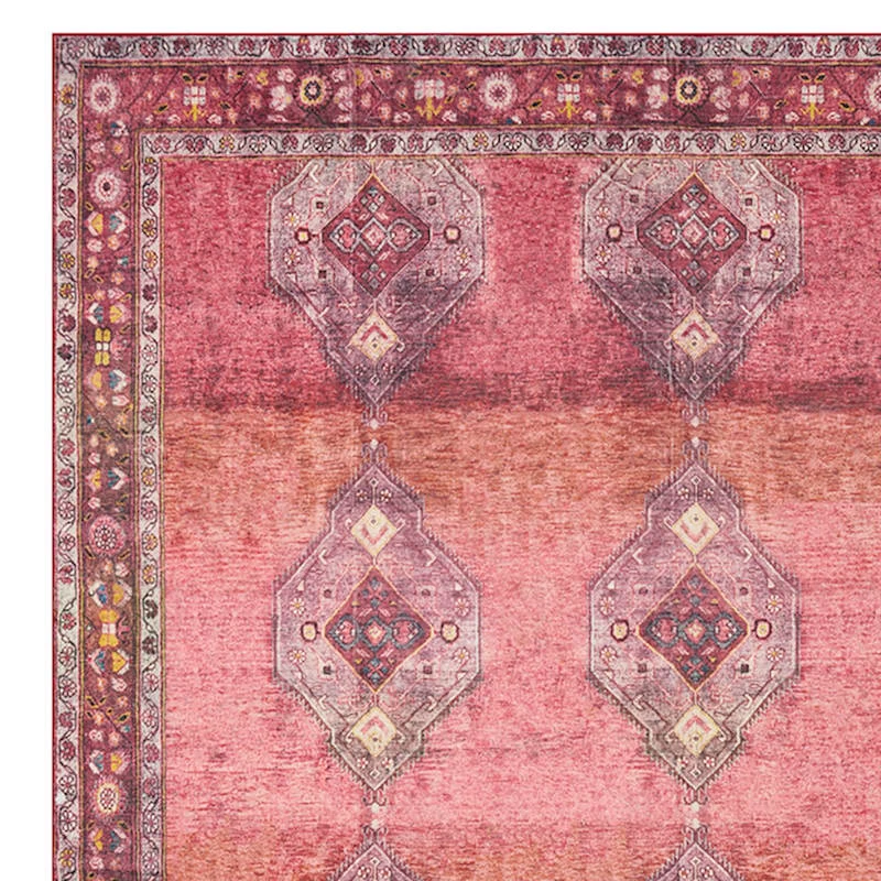 With a colorful, distressed pattern, our Freya red medallion washable accent rug gives that vintage look and adds class to the home. Intricate detailing makes up the overall bordered medallion pattern of the rug. Perfect as a focal point in a larger living room or as an accent piece in a smaller bedroom, this rug sets a calming foundation. This versatile red multi 8x10ft. area rug can go contemporary or traditional, itβs subtle enough to match just about any home decor.