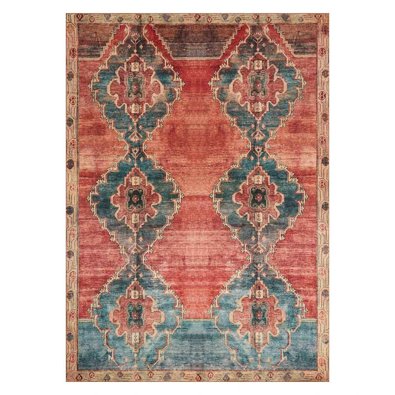 With a colorful, distressed pattern, our Freya orange medallion washable accent rug gives that vintage look and adds class to the home. Intricate detailing makes up the overall bordered medallion pattern of the rug. Perfect as a focal point in a larger living room or as an accent piece in a smaller bedroom, this rug sets a calming foundation. This versatile red multi 5x7ft. area rug can go contemporary or traditional, itβs subtle enough to match just about any home decor.