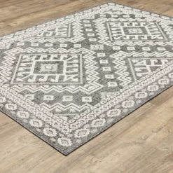 (E471) Journi Grey Diamond Design Area Rug, 8×10