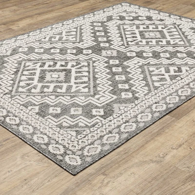 (E475) Tracey Boyd Athens Grey Diamond Design Area Rug, 5×7